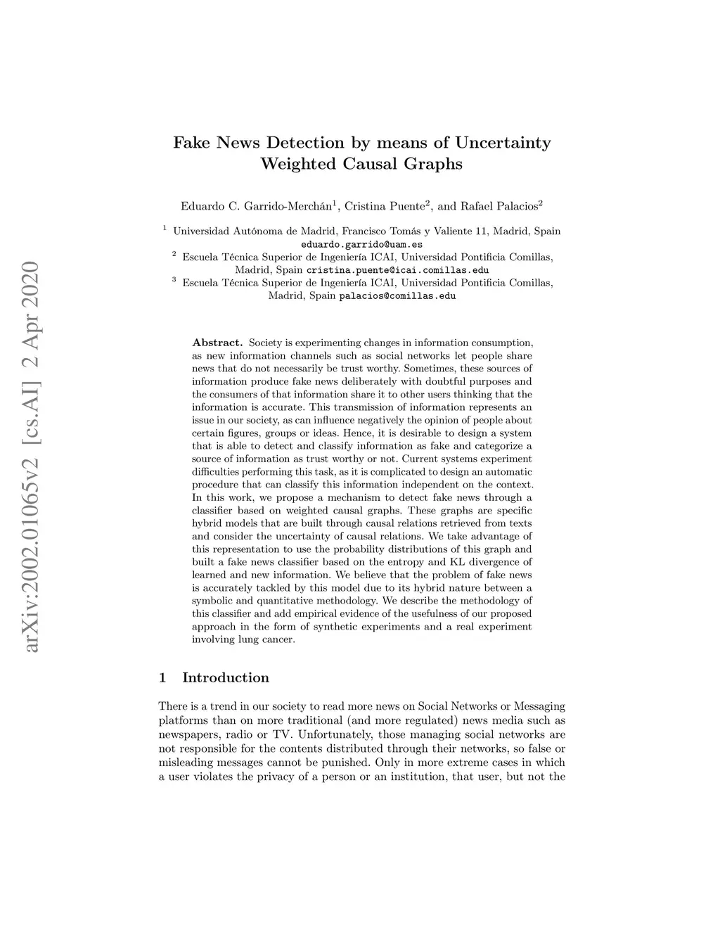 Fake News Detection by means of Uncertainty Weighted Causal Graphs