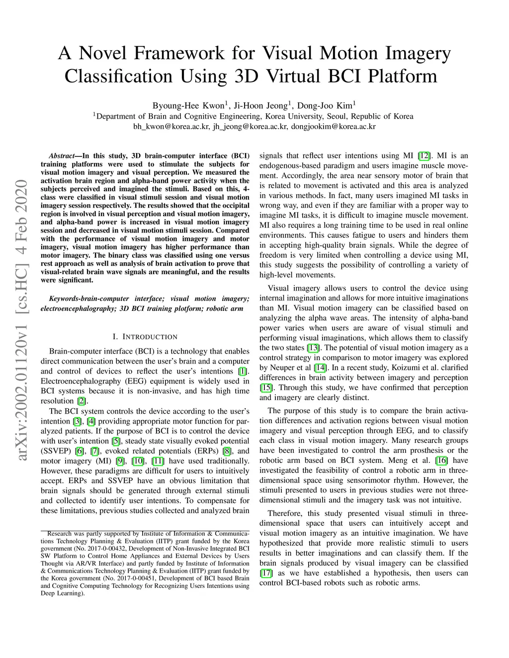 A Novel Framework for Visual Motion Imagery Classification Using 3D