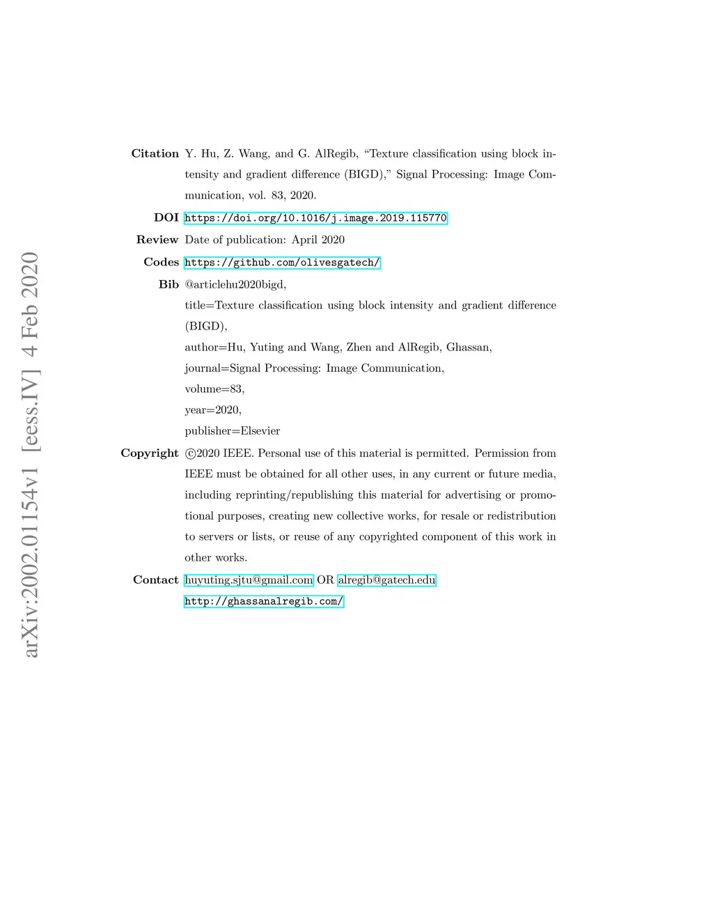 In this paper, we present an efficient and distinctive local descriptor, namely block intensity and gradient difference (BIGD). In an image patch, we randomly sample multi-scale block pairs and utilize the intensity and gradient differences of pairwise blocks to construct the local BIGD descriptor. The random sampling strategy and the multi-scale framework help BIGD descriptors capture the distinctive patterns of patches at different orientations and spatial granularity levels. We use vectors of locally aggregated descriptors (VLAD) or improved Fisher vector (IFV) to encode local BIGD descriptors into a full image descriptor, which is then fed into a linear support vector machine (SVM) classifier for texture classification. We compare the proposed descriptor with typical and state-of-the-art ones by evaluating their classification performance on five public texture data sets including Brodatz, CUReT, KTH-TIPS, and KTH-TIPS-2a and -2b. Experimental results show that the proposed BIGD descriptor with stronger discriminative power yields 0.12% ~ 6.43% higher classification accuracy than the state-of-the-art texture descriptor, dense microblock difference (DMD).