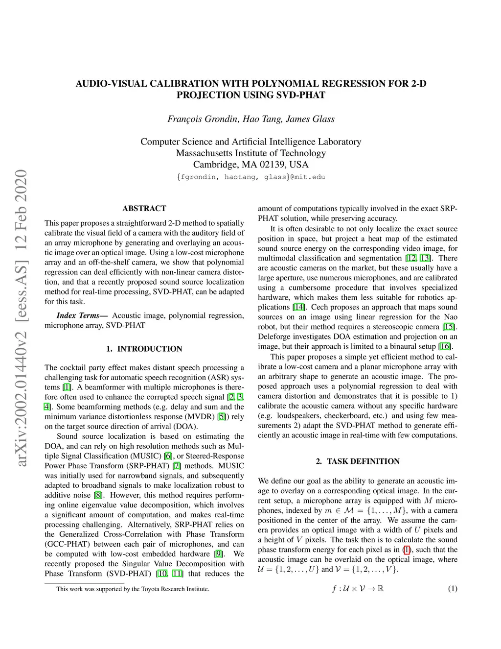 Audio-Visual Calibration with Polynomial Regression for 2-D Projection