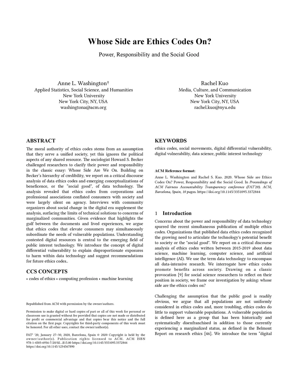 Whose Side are Ethics Codes On? Power, Responsibility and the Social