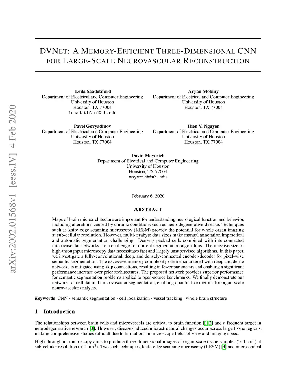 DVNet: A Memory-Efficient Three-Dimensional CNN for Large-Scale