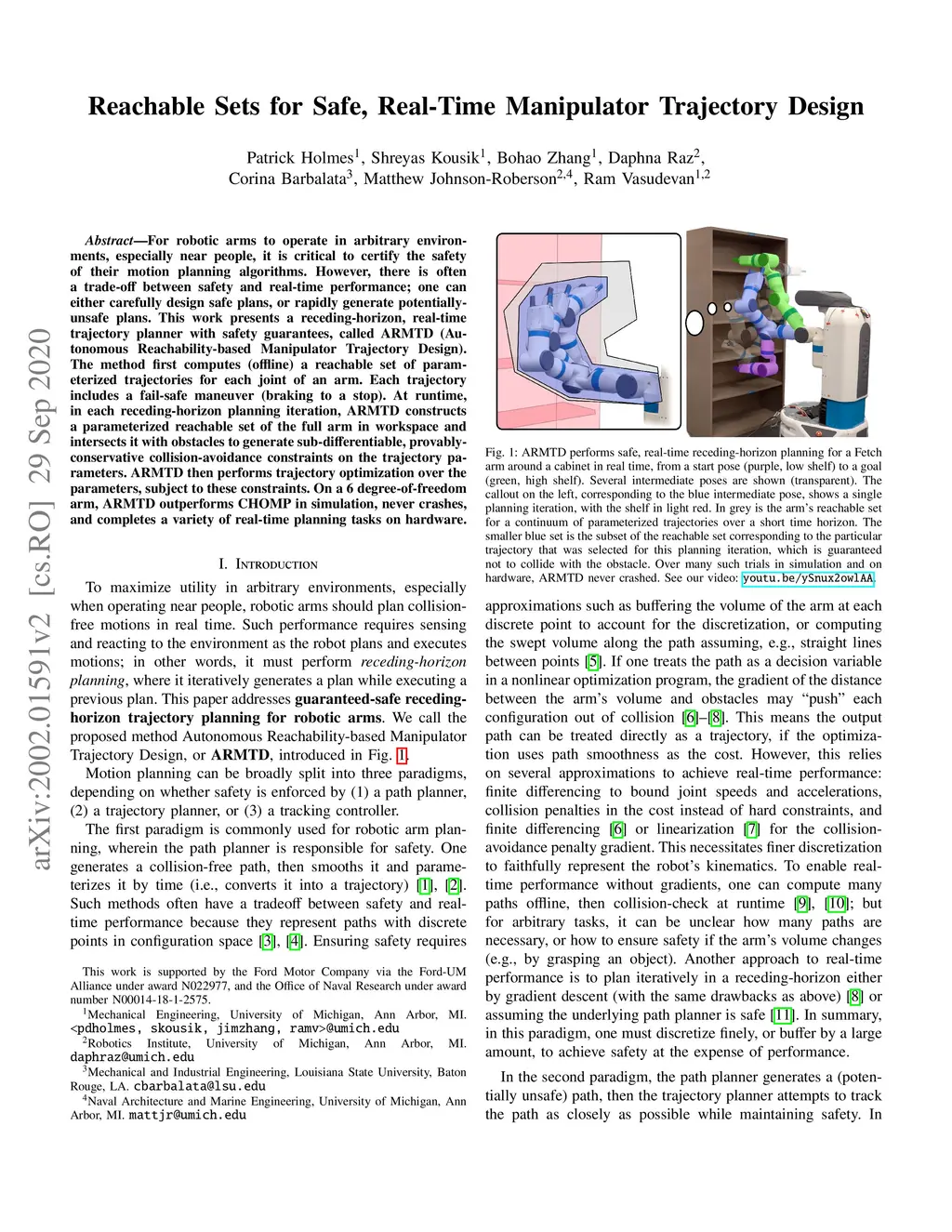 Reachable Sets for Safe, Real-Time Manipulator Trajectory Design