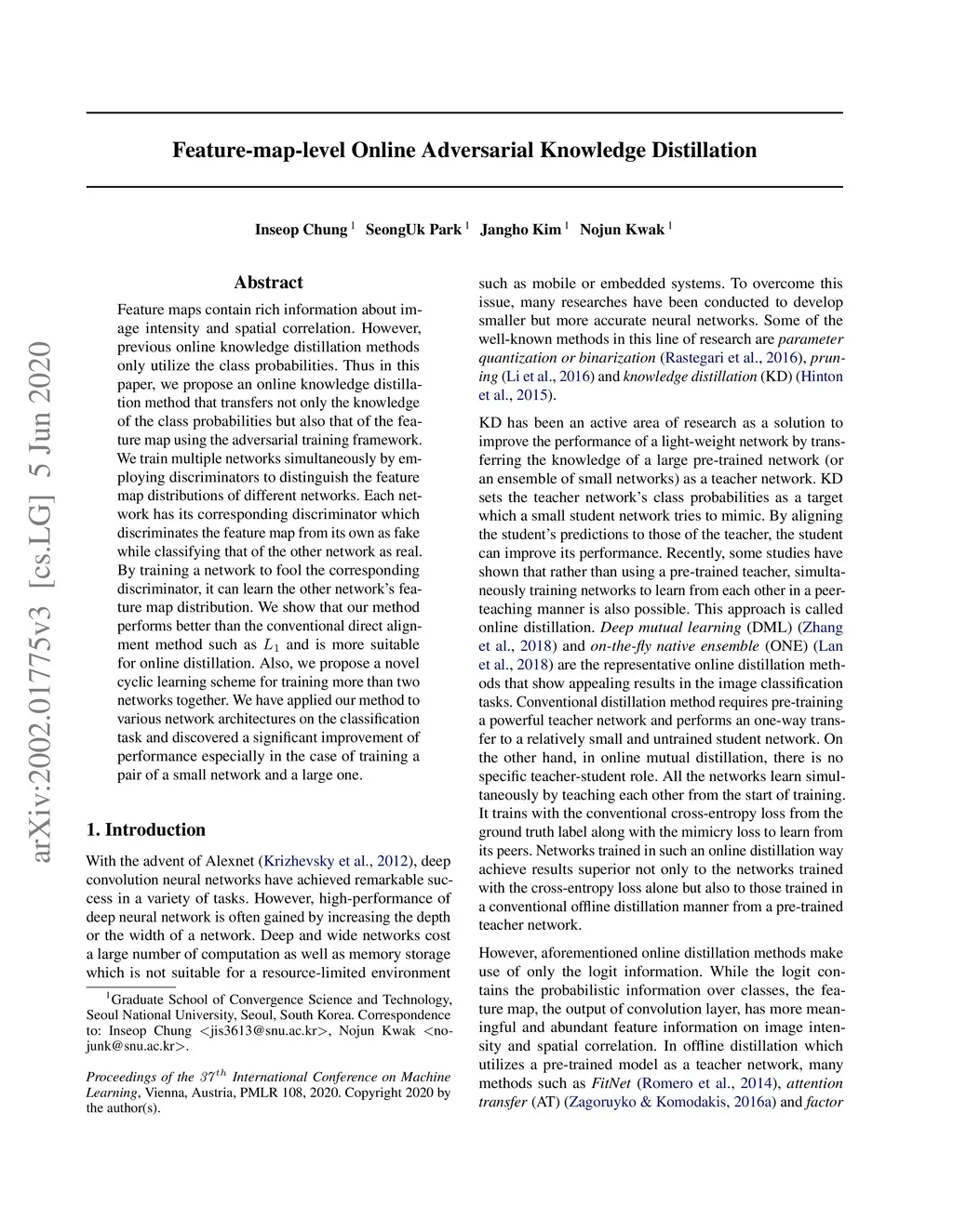 Feature-map-level Online Adversarial Knowledge Distillation