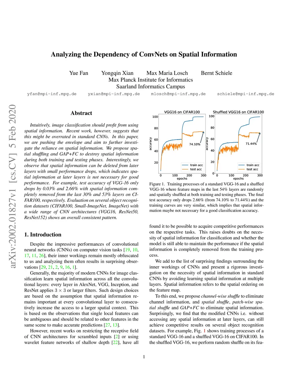 Intuitively, image classification should profit from using spatial information. Recent work, however, suggests that this might be overrated in standard CNNs. In this paper, we are pushing the envelope and aim to further investigate the reliance on spatial information. We propose spatial shuffling and GAP+FC to destroy spatial information during both training and testing phases. Interestingly, we observe that spatial information can be deleted from later layers with small performance drops, which indicates spatial information at later layers is not necessary for good performance. For example, test accuracy of VGG-16 only drops by 0.03% and 2.66% with spatial information completely removed from the last 30% and 53% layers on CIFAR100, respectively. Evaluation on several object recognition datasets (CIFAR100, Small-ImageNet, ImageNet) with a wide range of CNN architectures (VGG16, ResNet50, ResNet152) shows an overall consistent pattern.