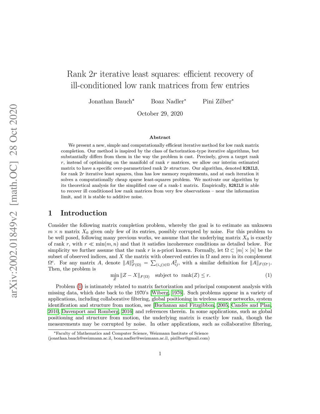 We present a new, simple and computationally efficient iterative method for low rank matrix completion. Our method is inspired by the class of factorization-type iterative algorithms, but substantially differs from them in the way the problem is cast. Precisely, given a target rank , instead of optimizing on the manifold of rank matrices, we allow our interim estimated matrix to have a specific over-parametrized rank structure. Our algorithm, denoted R2RILS for rank iterative least squares, has low memory requirements, and at each iteration it solves a computationally cheap sparse least-squares problem. We motivate our algorithm by its theoretical analysis for the simplified case of a rank-1 matrix. Empirically, R2RILS is able to recover ill conditioned low rank matrices from very few observations -- near the information limit, and it is stable to additive noise.