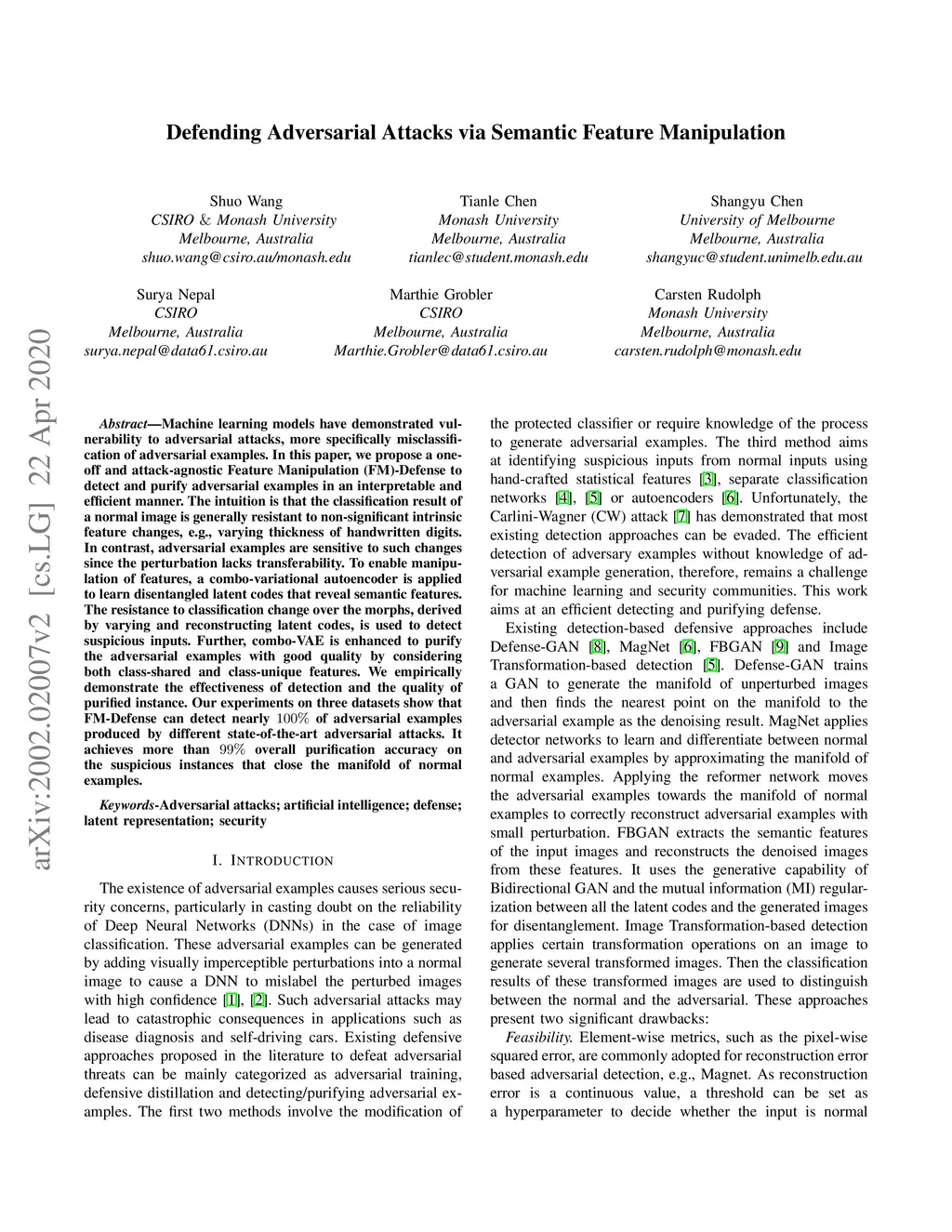 Defending Adversarial Attacks via Semantic Feature Manipulation