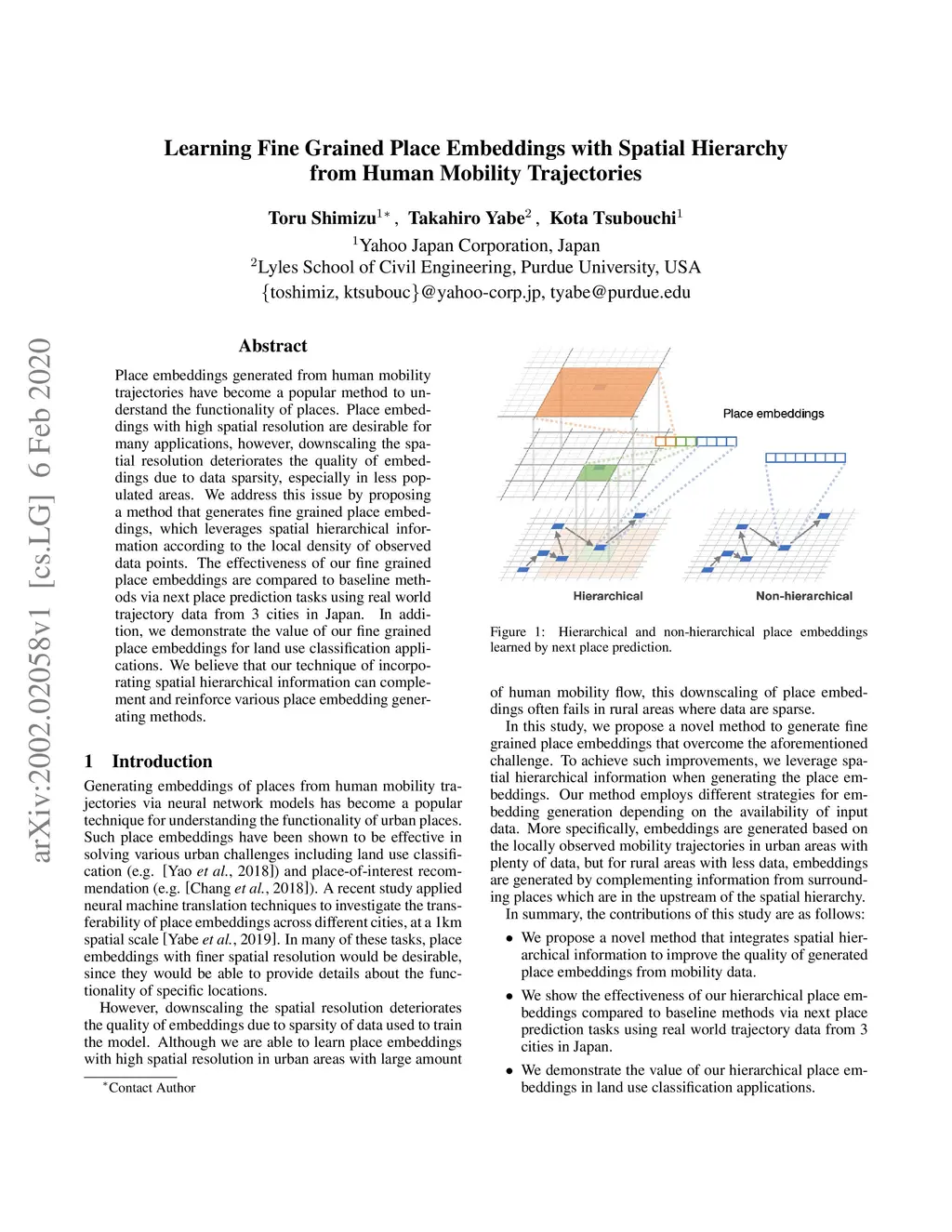 Learning Fine Grained Place Embeddings with Spatial Hierarchy from Human