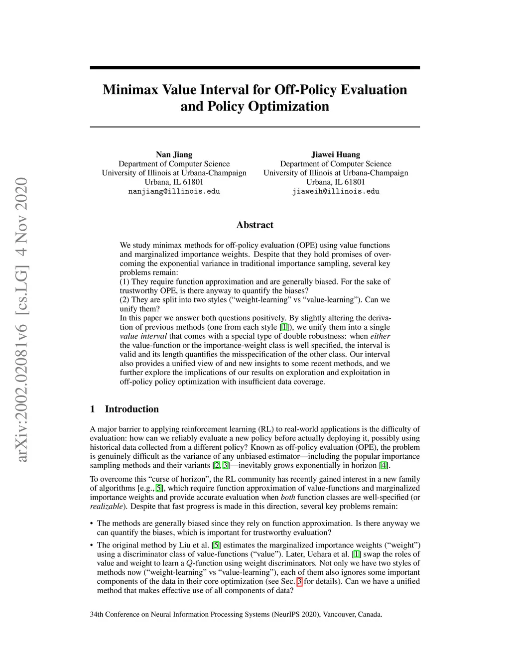 We study minimax methods for off-policy evaluation (OPE) using value functions and marginalized importance weights. Despite that they hold promises of overcoming the exponential variance in traditional importance sampling, several key problems remain: (1) They require function approximation and are generally biased. For the sake of trustworthy OPE, is there anyway to quantify the biases? (2) They are split into two styles ("weight-learning" vs "value-learning"). Can we unify them? In this paper we answer both questions positively. By slightly altering the derivation of previous methods (one from each style; Uehara et al., 2020), we unify them into a single value interval that comes with a special type of double robustness: when either the value-function or the importance-weight class is well specified, the interval is valid and its length quantifies the misspecification of the other class. Our interval also provides a unified view of and new insights to some recent methods, and we further explore the implications of our results on exploration and exploitation in off-policy policy optimization with insufficient data coverage.