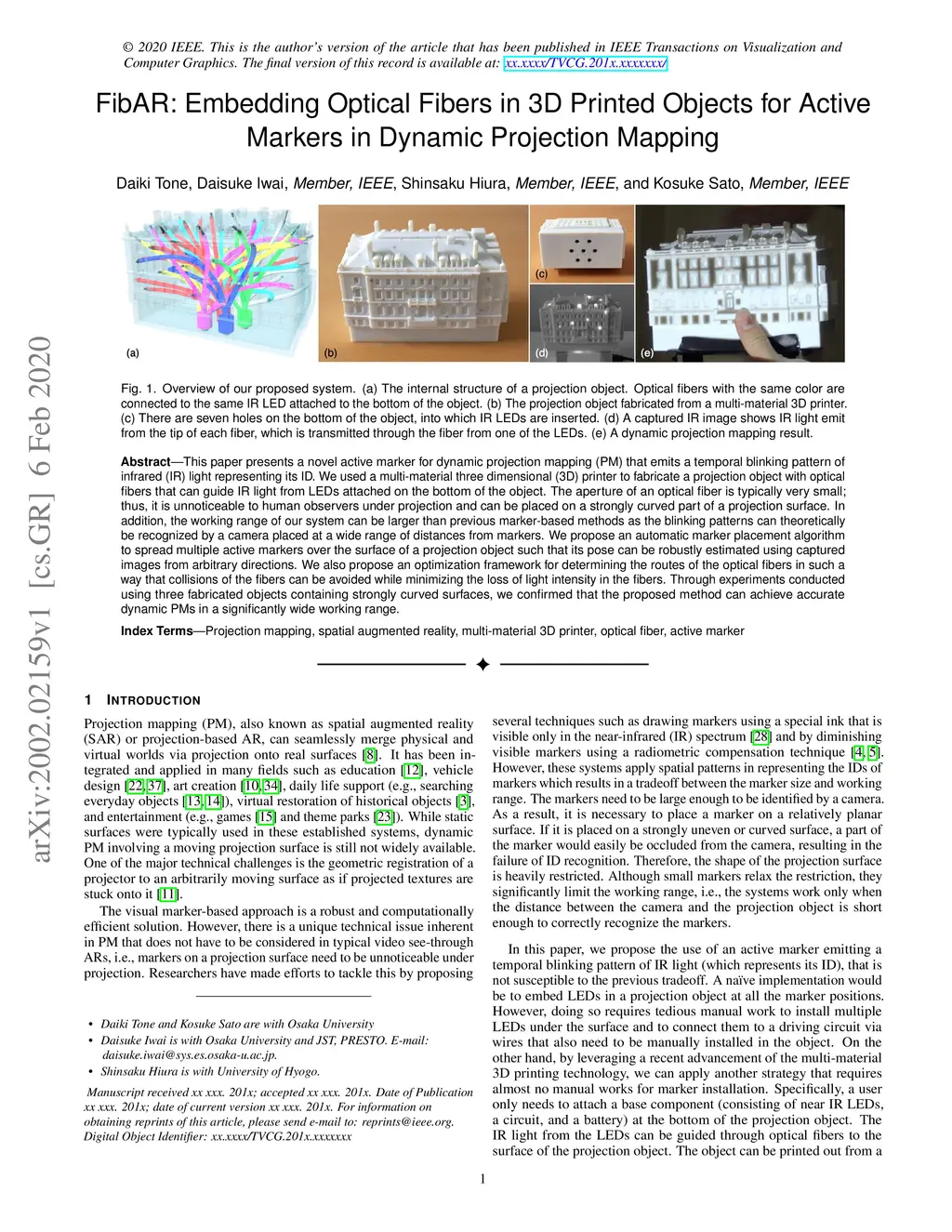 FibAR: Embedding Optical Fibers in 3D Printed Objects for Active Markers