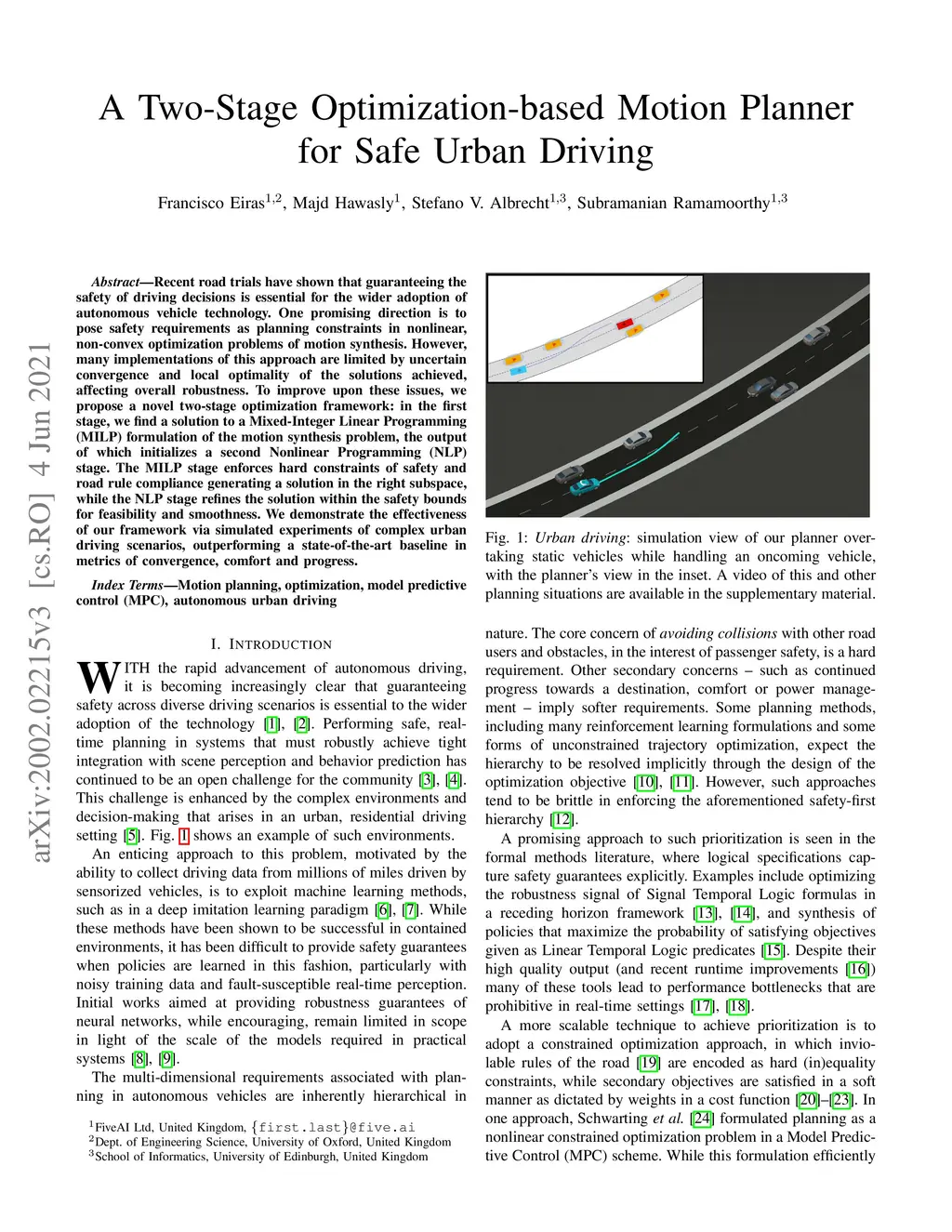 A Two-Stage Optimization-based Motion Planner for Safe Urban Driving