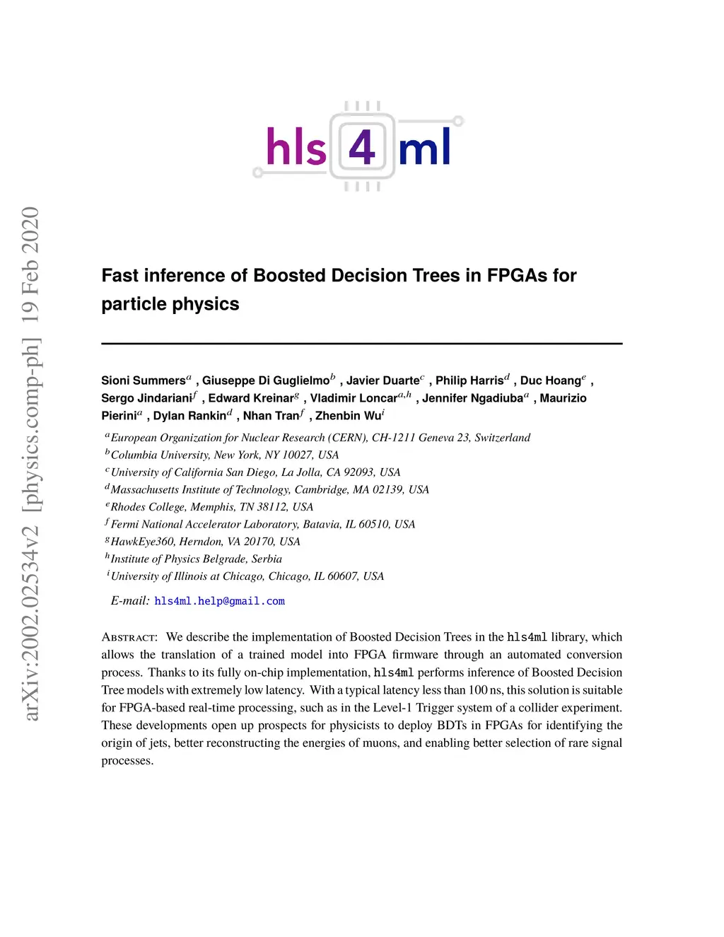 Fast inference of Boosted Decision Trees in FPGAs for particle physics