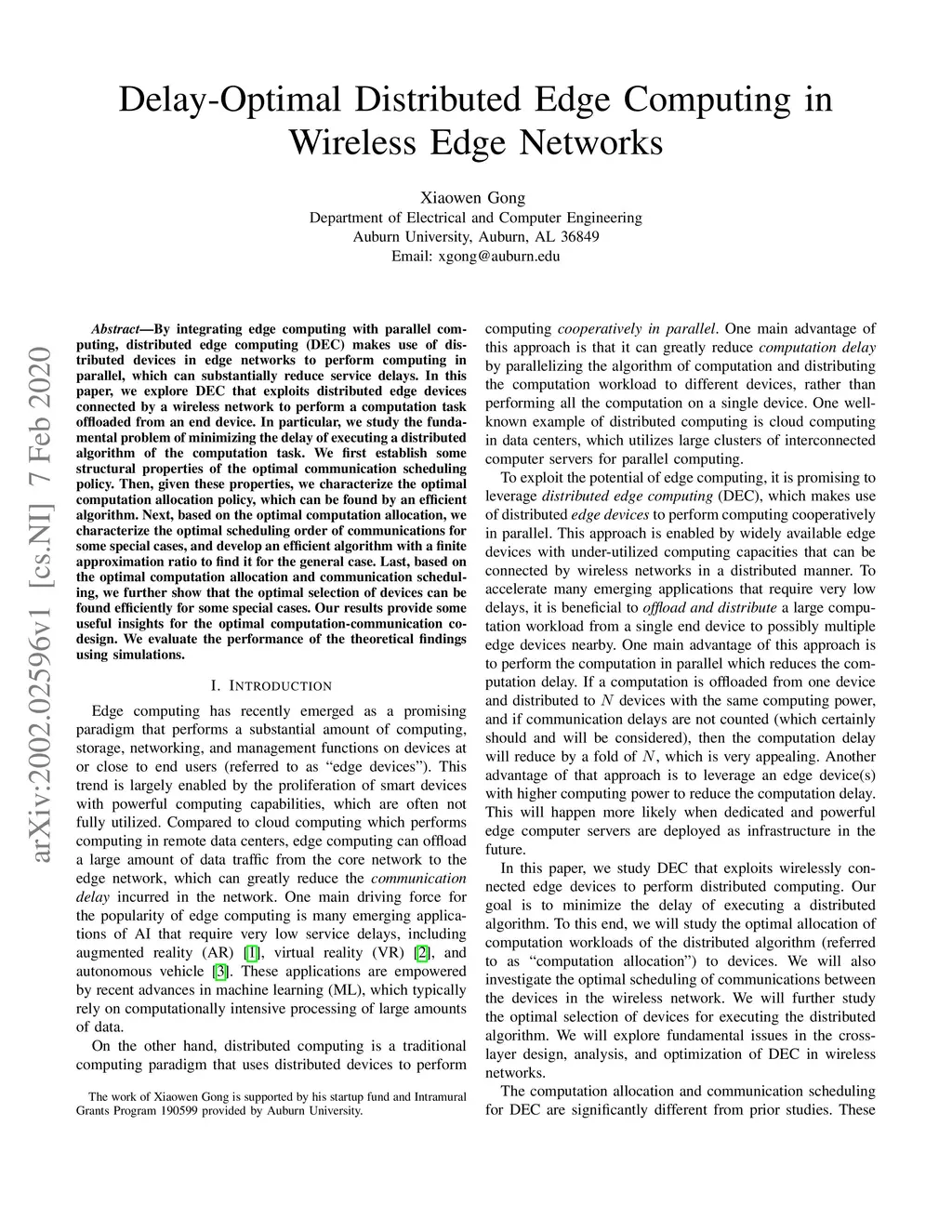 Delay-Optimal Distributed Edge Computing in Wireless Edge Networks