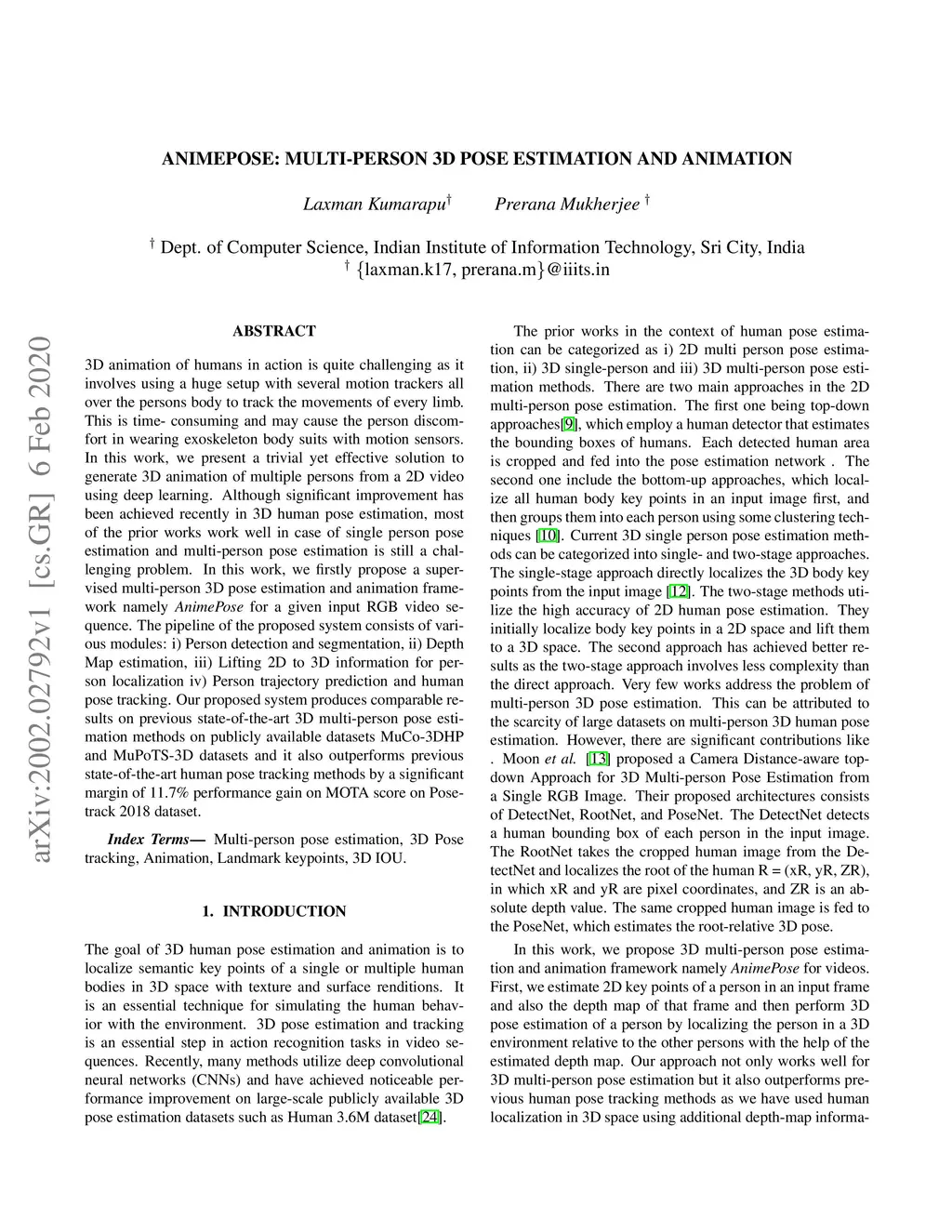 AnimePose: Multi-person 3D pose estimation and animation