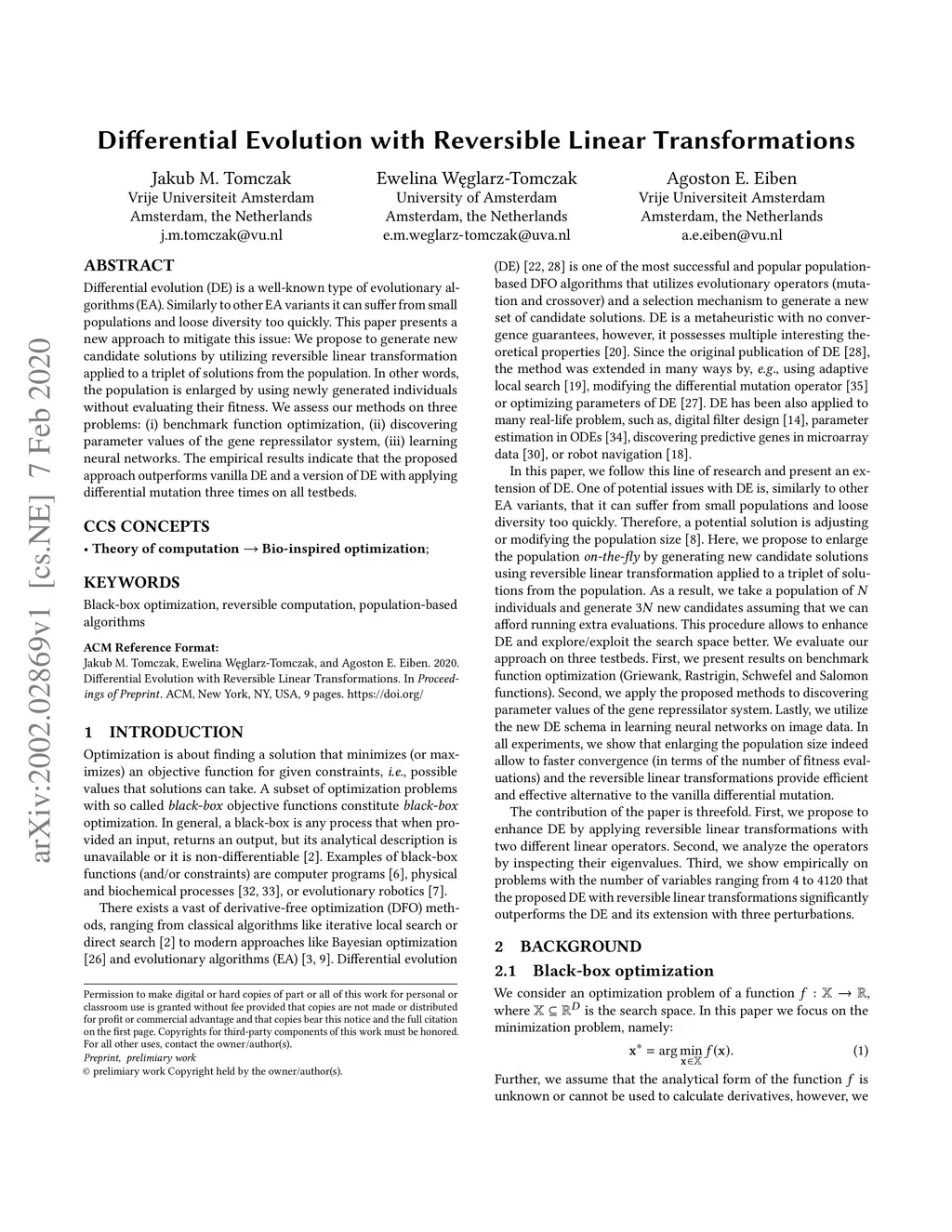 Differential evolution (DE) is a well-known type of evolutionary algorithms (EA). Similarly to other EA variants it can suffer from small populations and loose diversity too quickly. This paper presents a new approach to mitigate this issue: We propose to generate new candidate solutions by utilizing reversible linear transformation applied to a triplet of solutions from the population. In other words, the population is enlarged by using newly generated individuals without evaluating their fitness. We assess our methods on three problems: (i) benchmark function optimization, (ii) discovering parameter values of the gene repressilator system, (iii) learning neural networks. The empirical results indicate that the proposed approach outperforms vanilla DE and a version of DE with applying differential mutation three times on all testbeds.