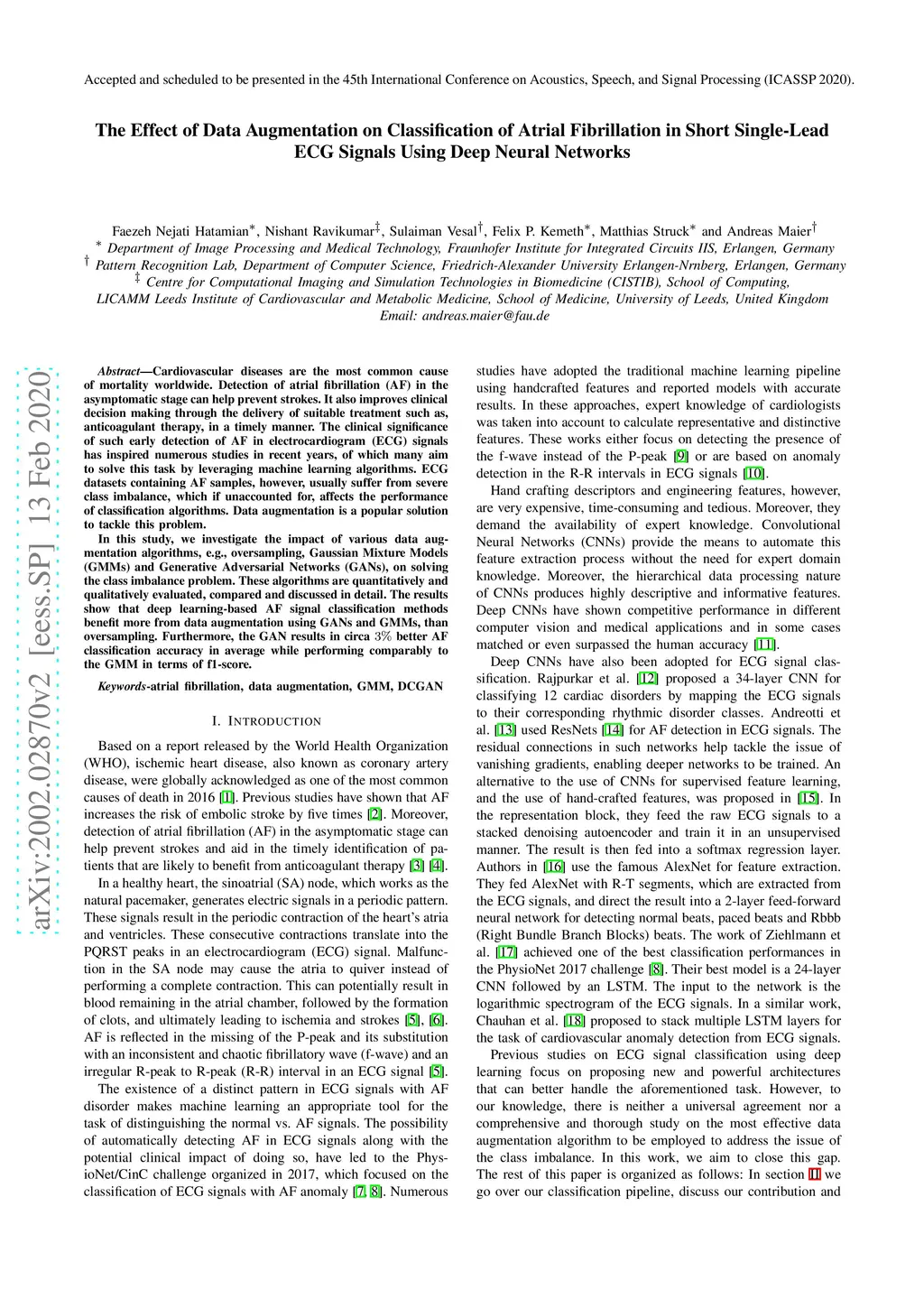 in Short Single-Lead ECG Signals Using Deep Neural Networks