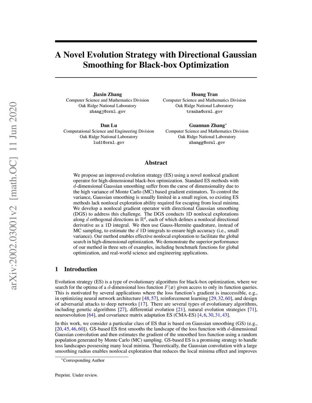 A Novel Evolution Strategy with Directional Gaussian Smoothing for