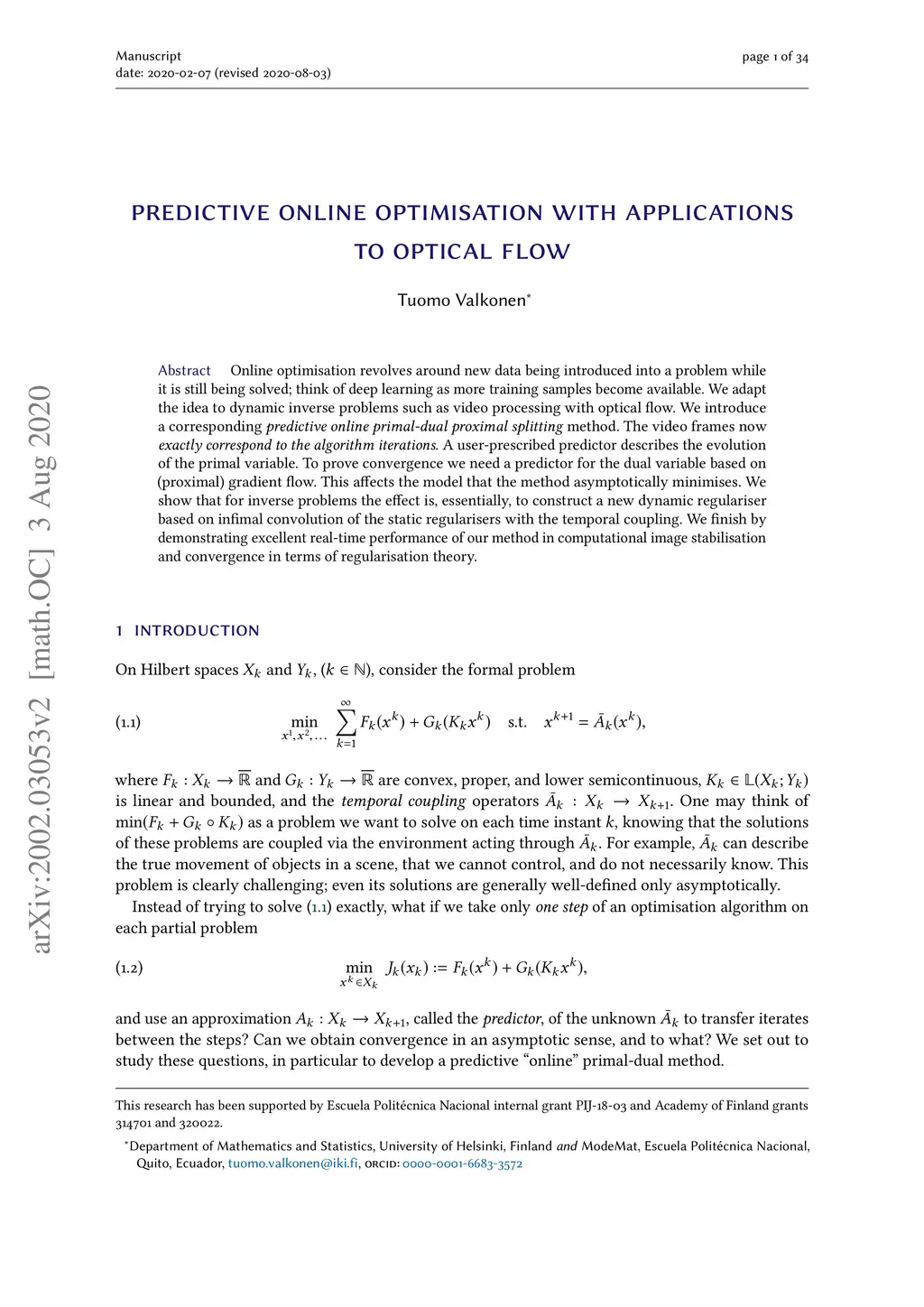 Predictive online optimisation with applications to optical flow