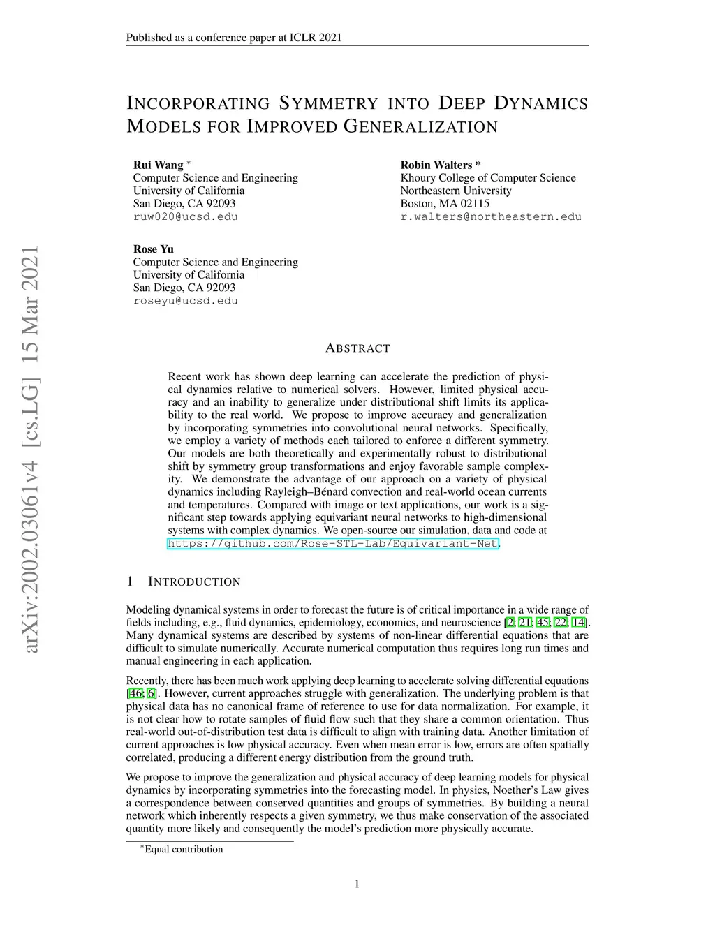 Incorporating Symmetry into Deep Dynamics Models for Improved
