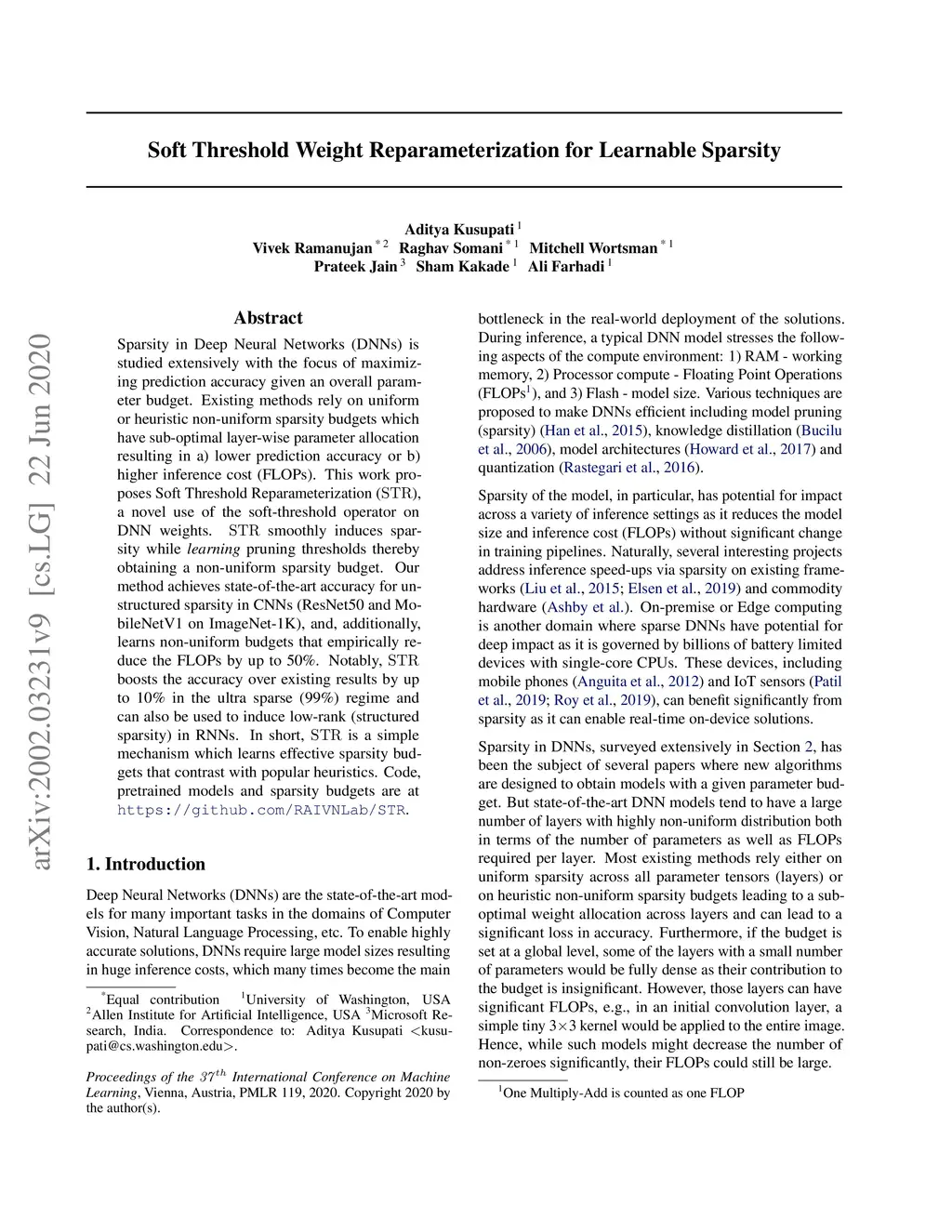 Soft Threshold Weight Reparameterization for Learnable Sparsity