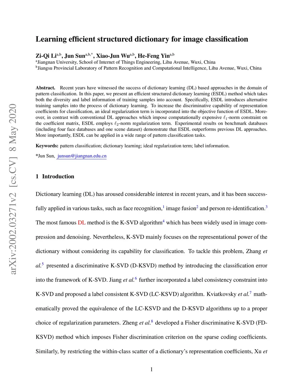 Recent years have witnessed the success of dictionary learning (DL) based approaches in the domain of pattern classification. In this paper, we present an efficient structured dictionary learning (ESDL) method which takes both the diversity and label information of training samples into account. Specifically, ESDL introduces alternative training samples into the process of dictionary learning. To increase the discriminative capability of representation coefficients for classification, an ideal regularization term is incorporated into the objective function of ESDL. Moreover, in contrast with conventional DL approaches which impose computationally expensive L1-norm constraint on the coefficient matrix, ESDL employs L2-norm regularization term. Experimental results on benchmark databases (including four face databases and one scene dataset) demonstrate that ESDL outperforms previous DL approaches. More importantly, ESDL can be applied in a wide range of pattern classification tasks. The demo code of our proposed ESDL will be available at https://github.com/li-zi-qi/ESDL.