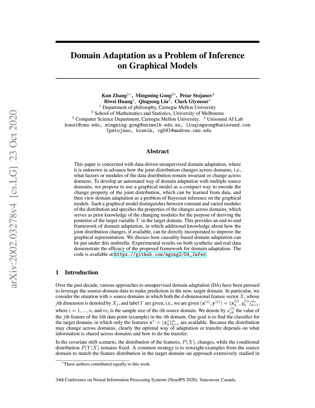 Domain Adaptation as a Problem of Inference on Graphical Models