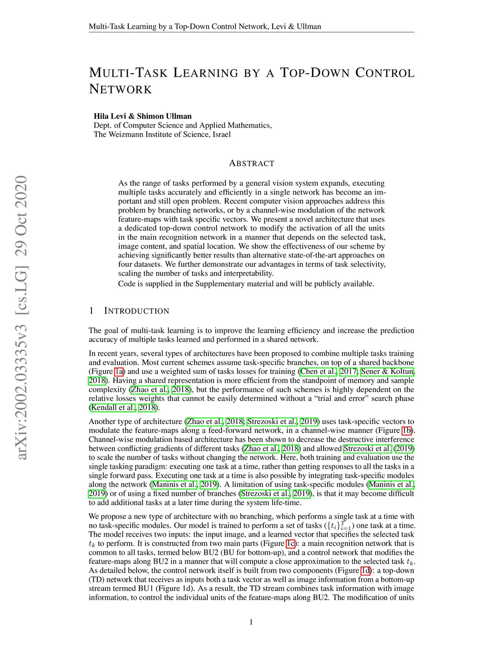 Multi-Task Learning by a Top-Down Control Network