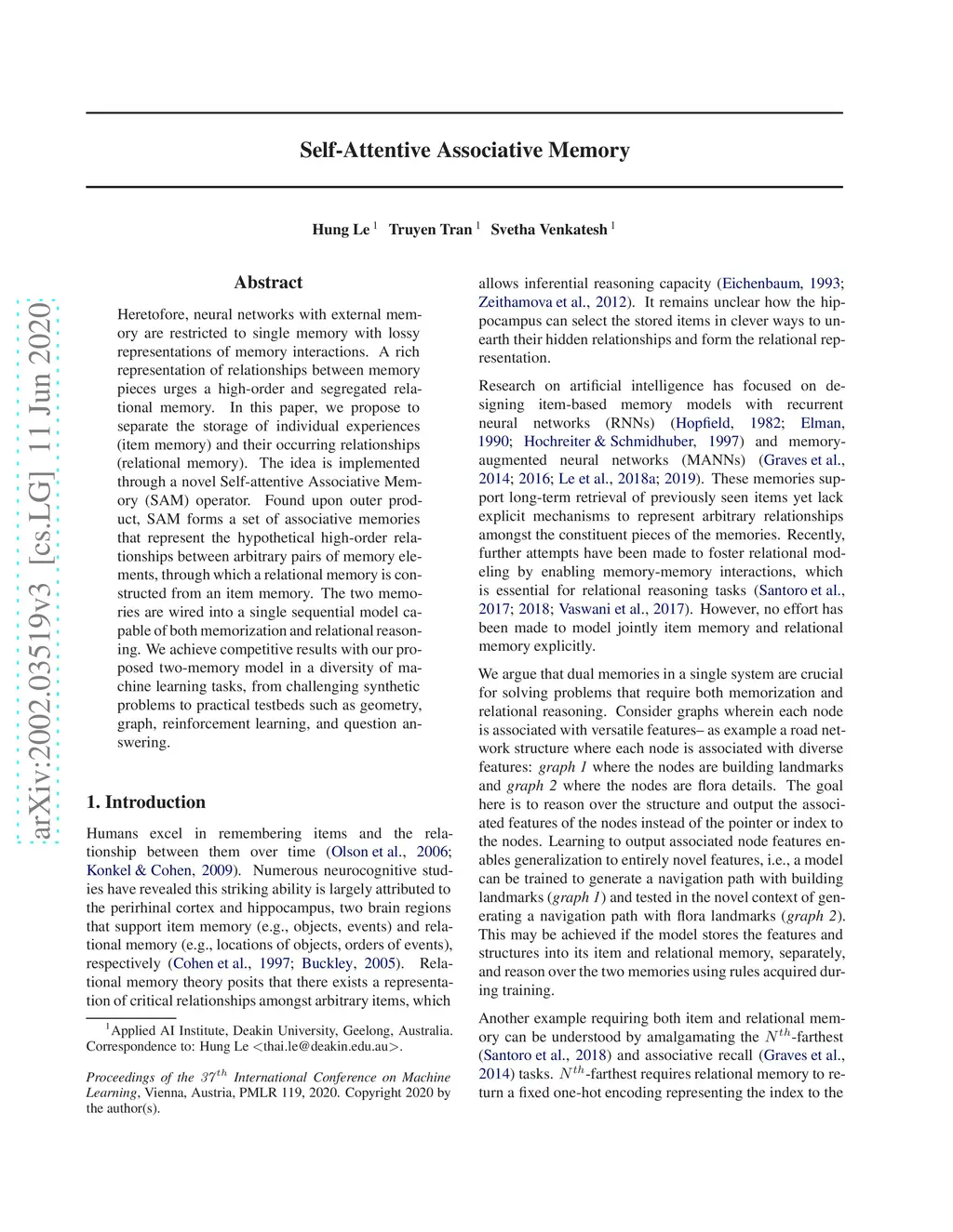 Self-Attentive Associative Memory