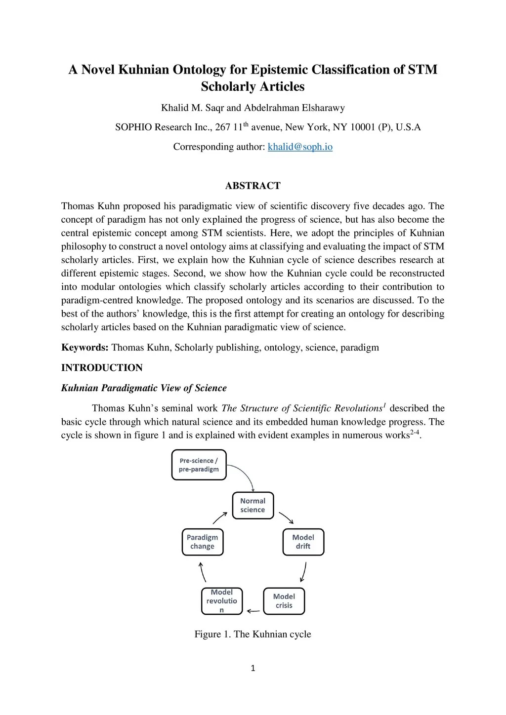 A Novel Kuhnian Ontology for Epistemic Classification of STM Scholarly Articles