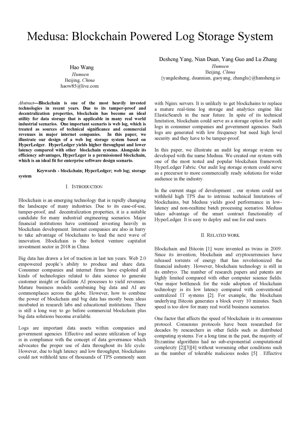 Blockchain is one of the most heavily invested technologies in recent years. Due to its tamper-proof and decentralization properties, blockchain has become an ideal utility for data storage that is applicable in many real world industrial scenarios. One important scenario is web log, which is treated as sources of technical significance and commercial revenues in major internet companies. In this paper, we illustrate our design of a web log storage system based on HyperLedger. HyperLedger yields higher throughput and lower latency compared with other blockchain systems. Alongside its efficiency advantages, HyperLeger is a permissioned blockchain, which is an ideal fit for enterprise software design scenario.