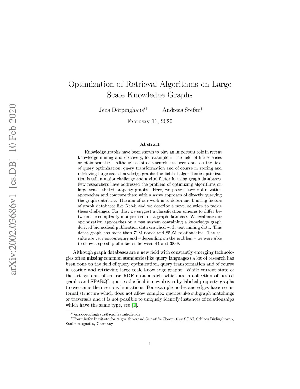 Optimization of Retrieval Algorithms on Large Scale Knowledge Graphs