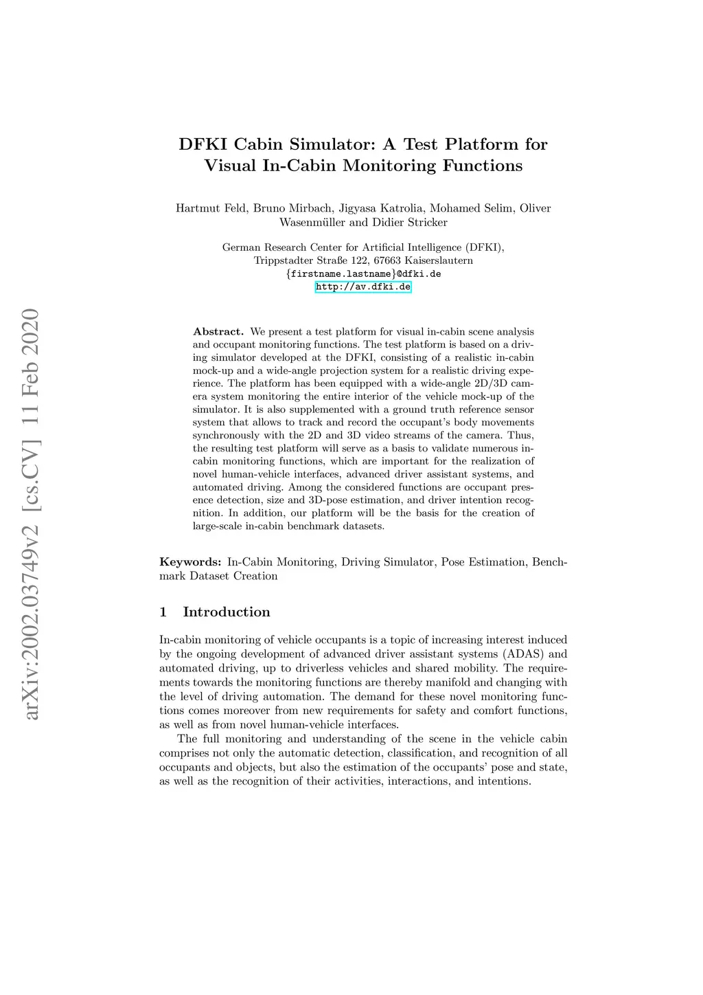 DFKI Cabin Simulator: A Test Platform for Visual In-Cabin Monitoring