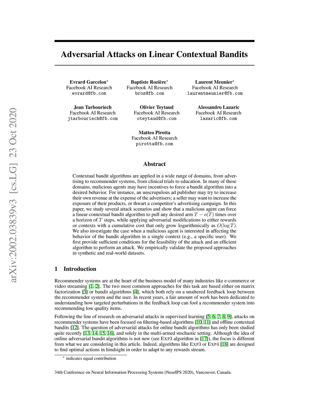 Adversarial Attacks on Linear Contextual Bandits