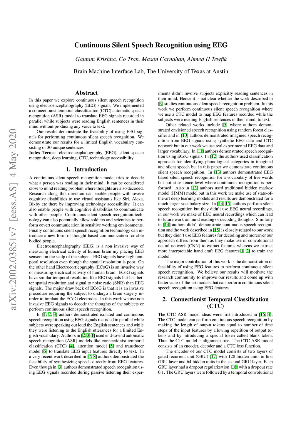 Continuous Silent Speech Recognition using EEG