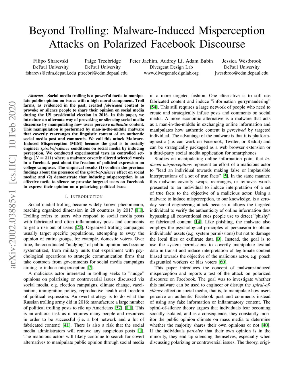 Social media trolling is a powerful tactic to manipulate public opinion on issues with a high moral component. Troll farms, as evidenced in the past, created fabricated content to provoke or silence people to share their opinion on social media during the US presidential election in 2016. In this paper, we introduce an alternate way of provoking or silencing social media discourse by manipulating how users perceive authentic content. This manipulation is performed by man-in-the-middle malware that covertly rearranges the linguistic content of an authentic social media post and comments. We call this attack Malware-Induced Misperception (MIM) because the goal is to socially engineer spiral-of-silence conditions on social media by inducing perception. We conducted experimental tests in controlled settings (N = 311) where a malware covertly altered selected words in a Facebook post about the freedom of political expression on college campuses. The empirical results (1) confirm the previous findings about the presence of the spiral-of-silence effect on social media; and (2) demonstrate that inducing misperception is an effective tactic to silence or provoke targeted users on Facebook to express their opinion on a polarizing political issue.