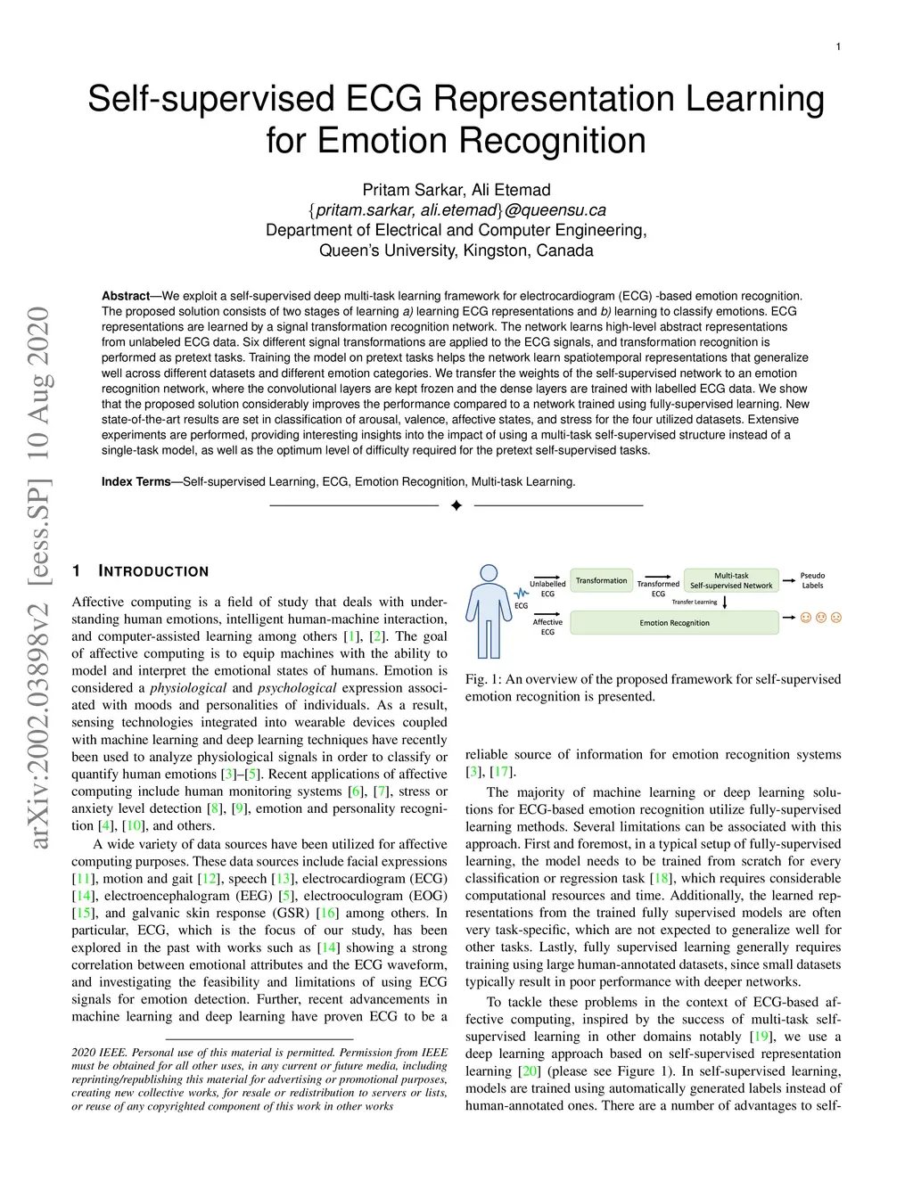 Self-supervised ECG Representation Learning for Emotion Recognition