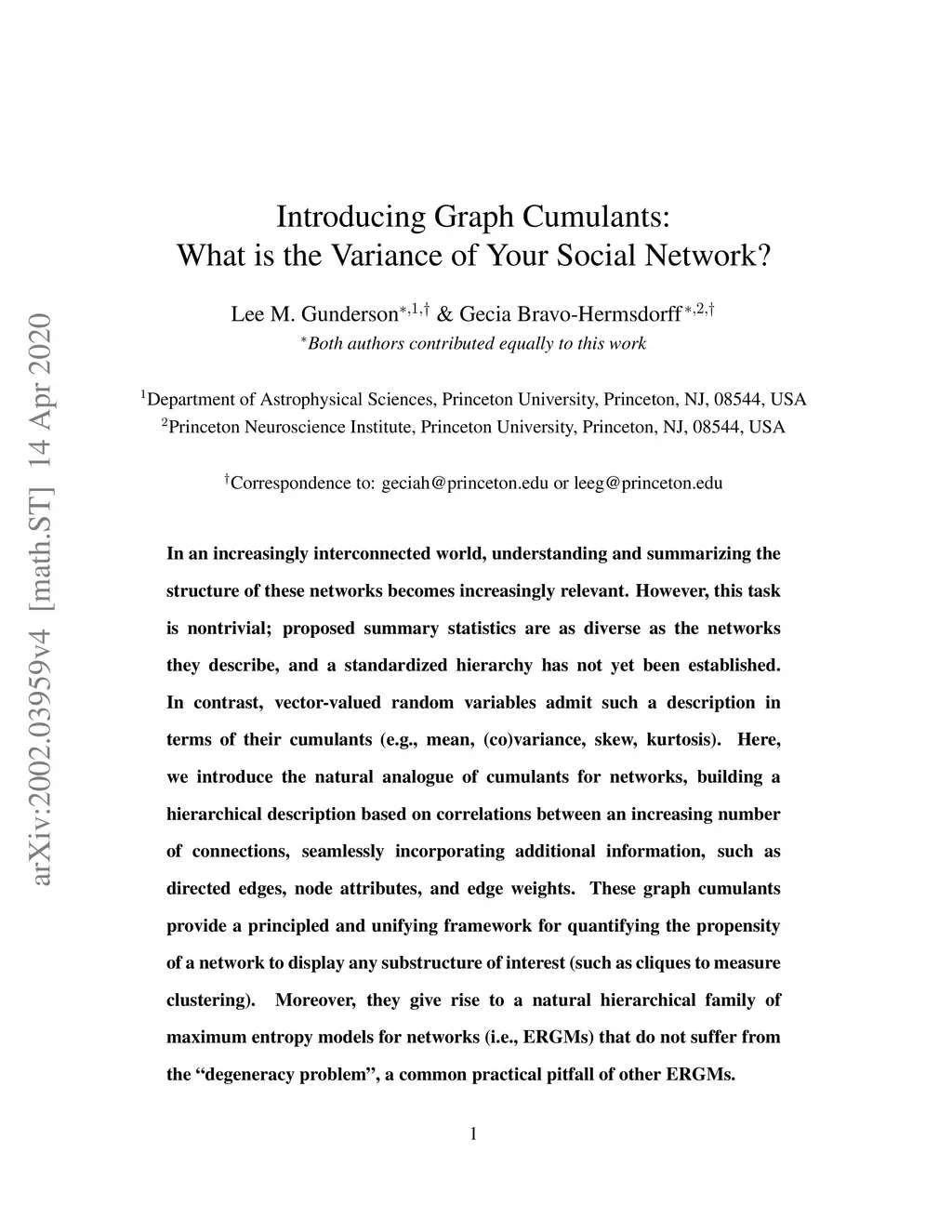 Introducing Graph Cumulants: What is the Variance of Your Social