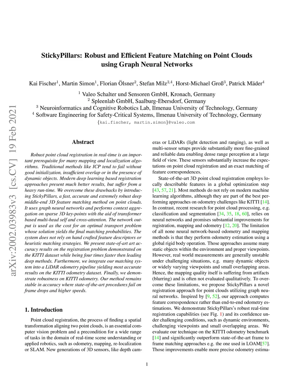 Robust point cloud registration in real-time is an important prerequisite for many mapping and localization algorithms. Traditional methods like ICP tend to fail without good initialization, insufficient overlap or in the presence of dynamic objects. Modern deep learning based registration approaches present much better results, but suffer from a heavy run-time. We overcome these drawbacks by introducing StickyPillars, a fast, accurate and extremely robust deep middle-end 3D feature matching method on point clouds. It uses graph neural networks and performs context aggregation on sparse 3D key-points with the aid of transformer based multi-head self and cross-attention. The network output is used as the cost for an optimal transport problem whose solution yields the final matching probabilities. The system does not rely on hand crafted feature descriptors or heuristic matching strategies. We present state-of-art art accuracy results on the registration problem demonstrated on the KITTI dataset while being four times faster then leading deep methods. Furthermore, we integrate our matching system into a LiDAR odometry pipeline yielding most accurate results on the KITTI odometry dataset. Finally, we demonstrate robustness on KITTI odometry. Our method remains stable in accuracy where state-of-the-art procedures fail on frame drops and higher speeds.