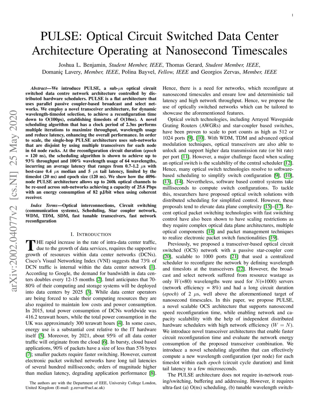 PULSE: Optical circuit switched Data Center architecture operating at