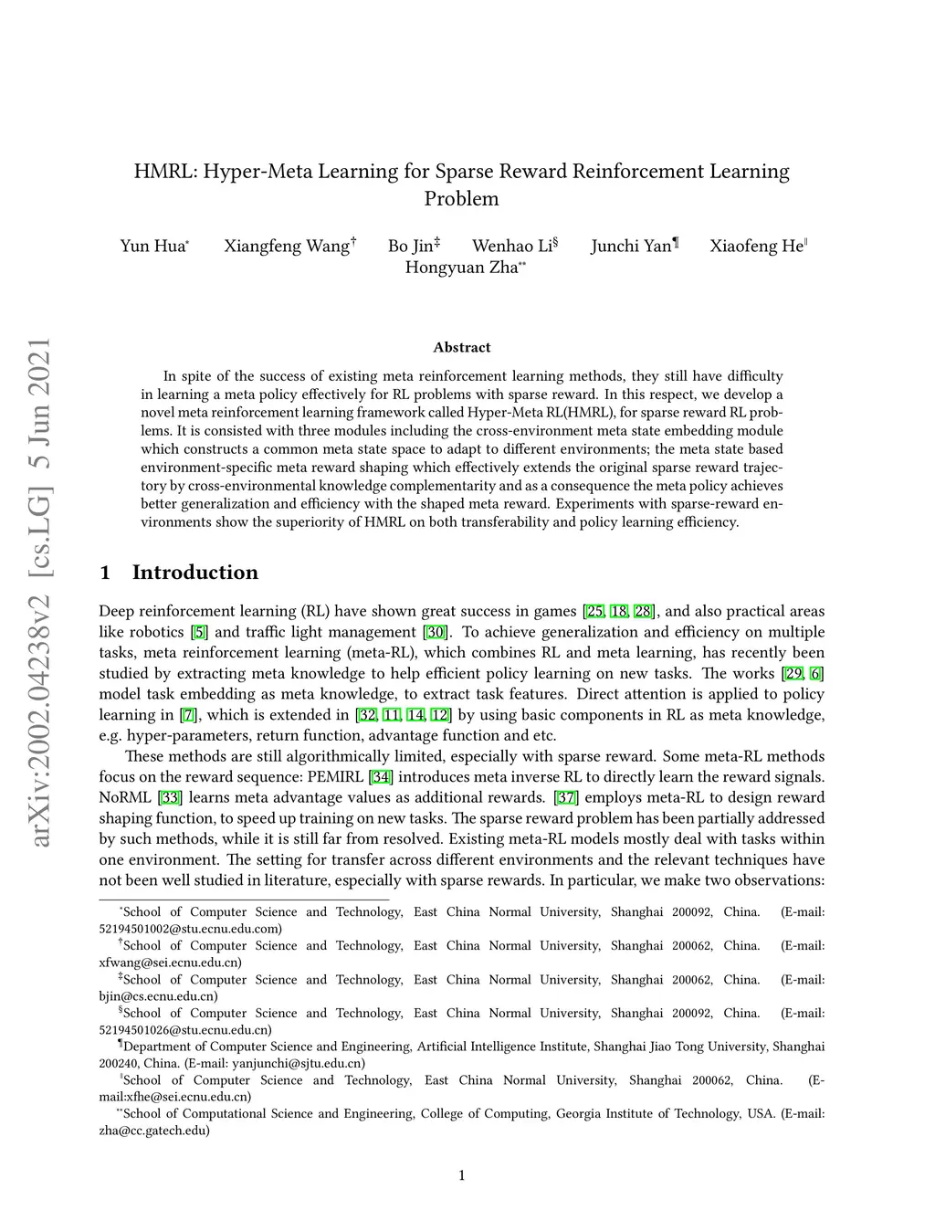 HMRL: Hyper-Meta Learning for Sparse Reward Reinforcement Learning