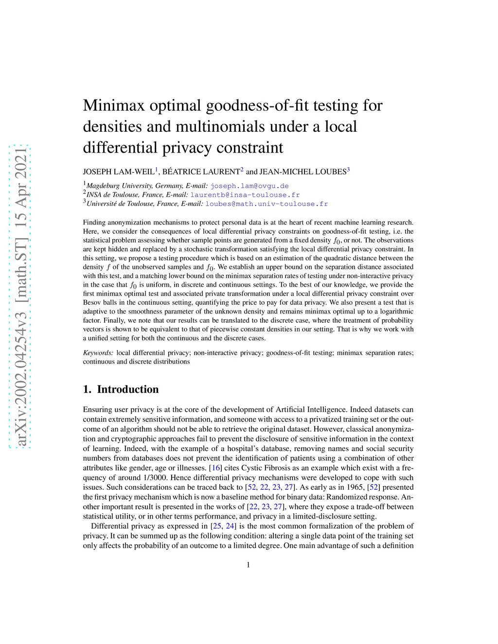under a local differential privacy constraint