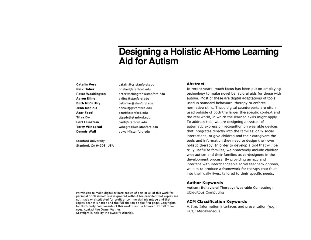 In recent years, much focus has been put on employing technology to make novel behavioural aids for those with autism. Most of these are digital adaptations of tools used in standard behavioural therapy to enforce normative skills. These digital counterparts are often used outside of both the larger therapeutic context and the real world, in which the learned skills might apply. To address this, we are designing a system of automatic expression recognition on wearable devices that integrates directly into the families daily social interactions, to give children and their caregivers the tools and information they need to design their own holistic therapy. In order to develop a tool that will be truly useful to families, we proactively include children with autism and their families as co-designers in the development process. By providing an app and interface with interchangeable social feedback options, we aim to produce a framework for therapy that folds into their daily lives, tailored to their specific needs.