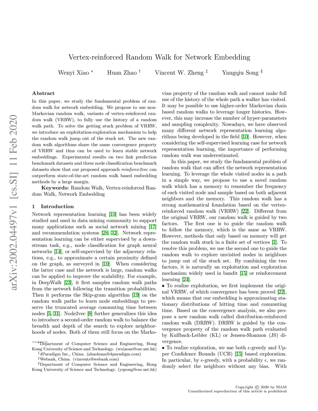 Vertex-reinforced Random Walk for Network Embedding