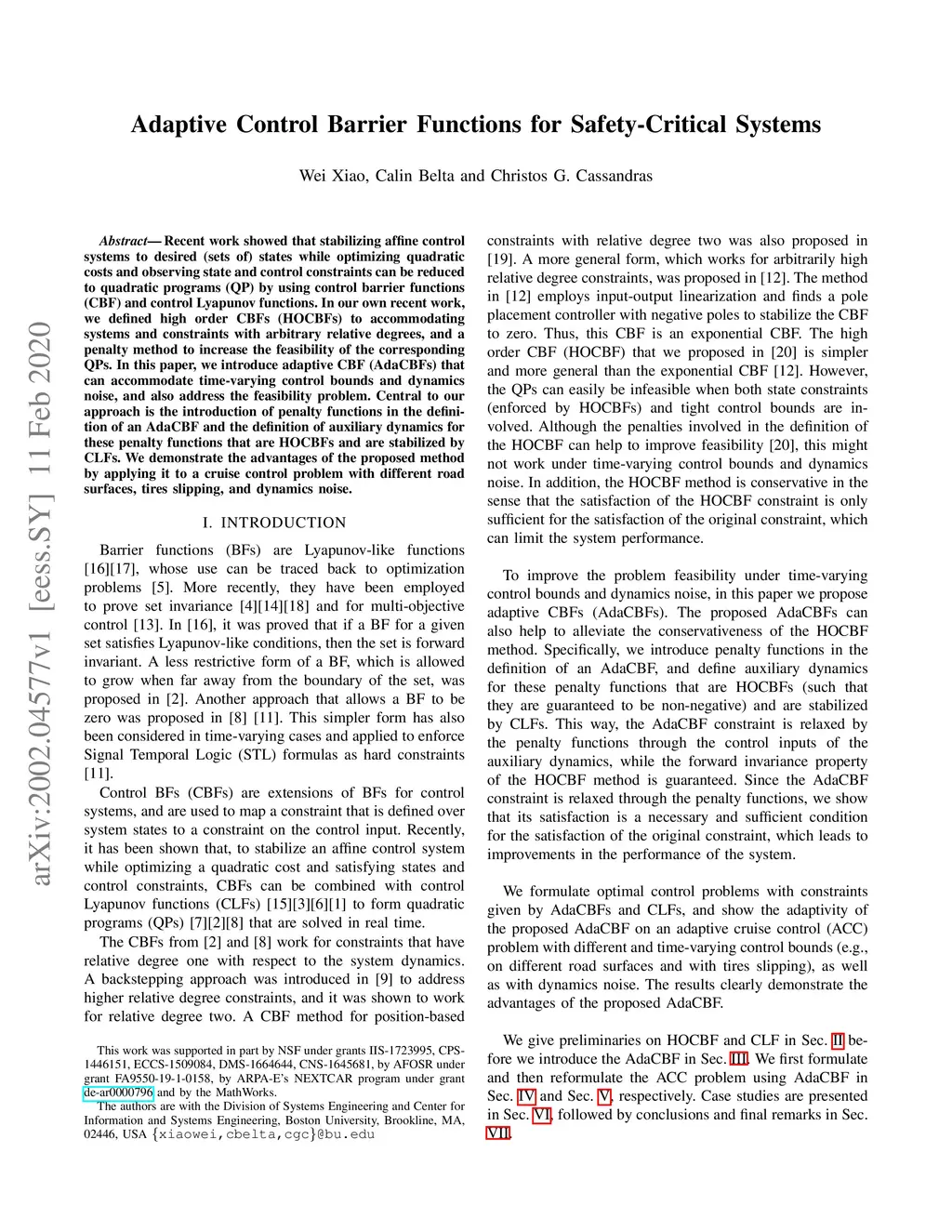 Adaptive Control Barrier Functions for Safety-Critical Systems