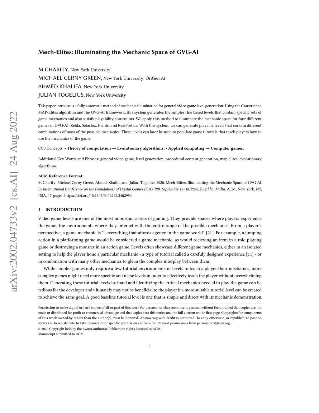 International Conference on Foundations of Digital Games (FDG), 2020