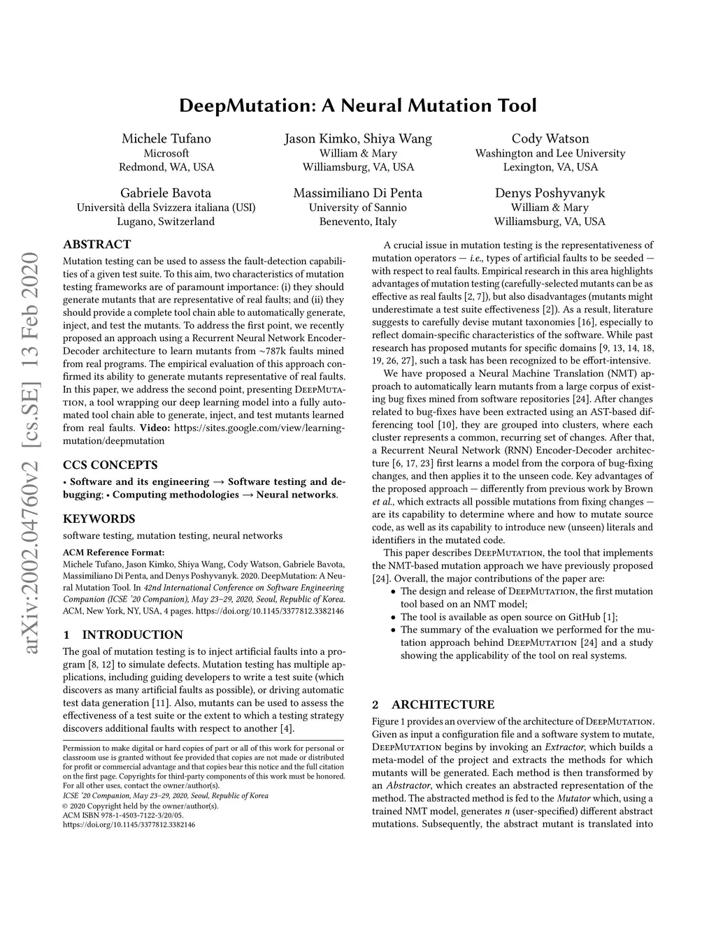 Mutation testing can be used to assess the fault-detection capabilities of a given test suite. To this aim, two characteristics of mutation testing frameworks are of paramount importance: (i) they should generate mutants that are representative of real faults; and (ii) they should provide a complete tool chain able to automatically generate, inject, and test the mutants. To address the first point, we recently proposed an approach using a Recurrent Neural Network Encoder-Decoder architecture to learn mutants from ~787k faults mined from real programs. The empirical evaluation of this approach confirmed its ability to generate mutants representative of real faults. In this paper, we address the second point, presenting DeepMutation, a tool wrapping our deep learning model into a fully automated tool chain able to generate, inject, and test mutants learned from real faults. Video: https://sites.google.com/view/learning-mutation/deepmutation