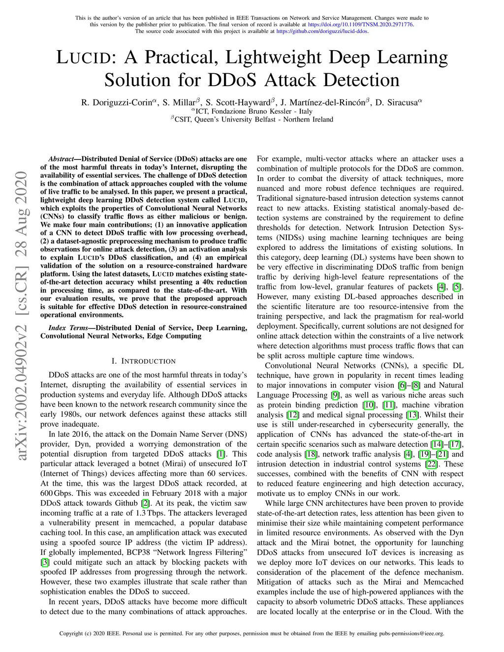 LUCID: A Practical, Lightweight Deep Learning Solution for DDoS Attack