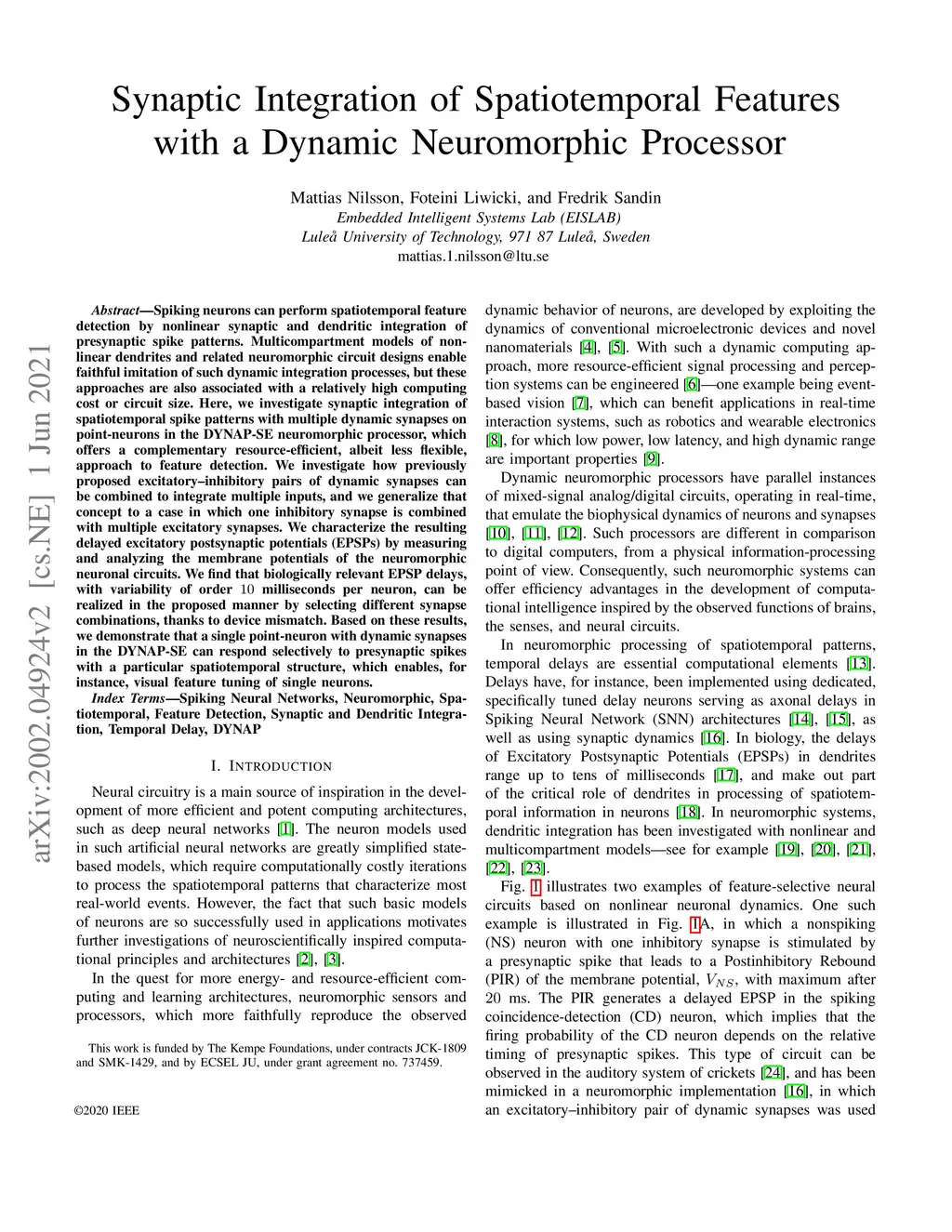 Synaptic Integration of Spatiotemporal Features with a Dynamic