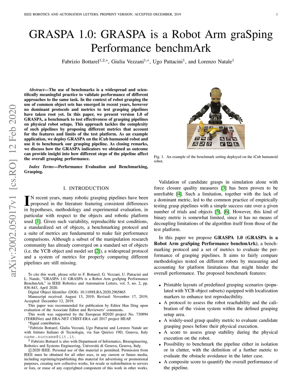 GRASPA 1.0: GRASPA is a Robot Arm graSping Performance benchmArk
