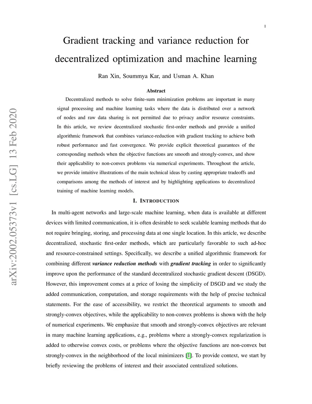 Decentralized methods to solve finite-sum minimization problems are important in many signal processing and machine learning tasks where the data is distributed over a network of nodes and raw data sharing is not permitted due to privacy and/or resource constraints. In this article, we review decentralized stochastic first-order methods and provide a unified algorithmic framework that combines variance-reduction with gradient tracking to achieve both robust performance and fast convergence. We provide explicit theoretical guarantees of the corresponding methods when the objective functions are smooth and strongly-convex, and show their applicability to non-convex problems via numerical experiments. Throughout the article, we provide intuitive illustrations of the main technical ideas by casting appropriate tradeoffs and comparisons among the methods of interest and by highlighting applications to decentralized training of machine learning models.